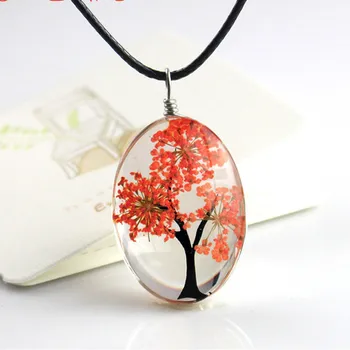 Кожаная цепочка Бохо Длинный натуральный камень ожерелье s ручной работы ожерелье с засушенными цветами стеклянный кулон летние ювелирные ...