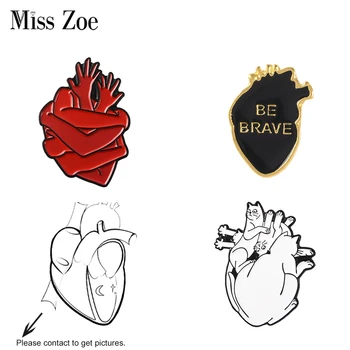 Орган сердце Эмаль булавки Звездное сердце храбрые кошки кровожадное объятие мешочек для брошек одежда нагрудные значки медицинские ювели...