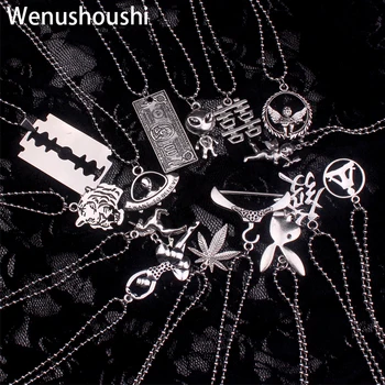 WENUSHOUSHI Бусы из нержавеющей стали цепи милый кролик Чужой лист долларов колье с ангелом для мужчин и женщин колье панк унисекс подарки