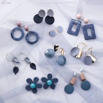 AOMU лето синий Геометрическая акриловые нерегулярные Перфорированный Круглый круглый квадратные Капли серьги для Для женщин Металл Bump вече...