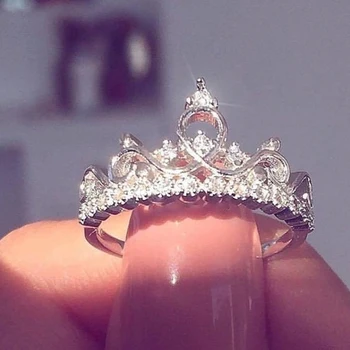 Модные роскошная Корона кольцо заявление для женщин Свадебные Циркон обручение тенденция геометрический розовое золото серебро романтиве...