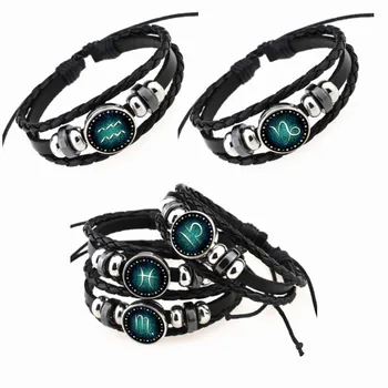 Новая мода 12 Созвездий Кожа Знак зодиака с бусинами браслет в стиле панк браслеты для мужчин украшения для мальчиков дорожные аксессуары По...