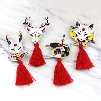 Винтаж животных сплава кисточкой брошь японский ниндзя Кролик огонь лиса змея Кендо пятнистого оленя эмаль булавки значок для рюкзака друз...