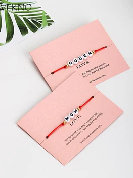 VEKNO ЗАКАЗ пара бусина буква его и ее браслет для мужчин женщин Красный Черный Веревка Регулируемый строка имя браслеты DIY ювелирных