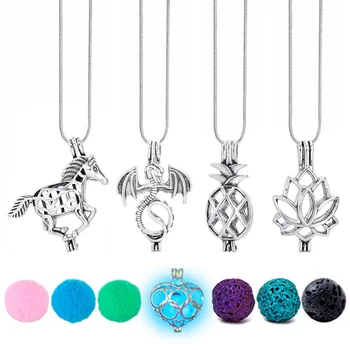 Винтаж Цепочки и ожерелья чувствовал мяч вулканического камня светятся в темноте Цепочки и ожерелья медальон ароматерапевтические духи эф...