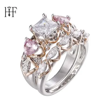 Большие кольца для Для женщин 1 компл. розовый кубический циркон сердце серебро Цвет кольцо Bague Femme обручальные кольца Обручение кольцо Вече...