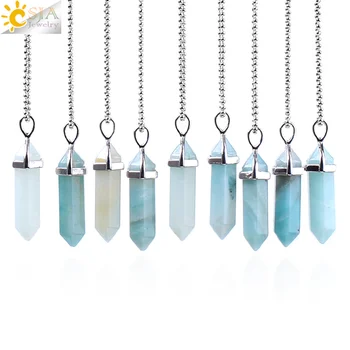 Csja Лидер продаж шестигранный кристалл ожерелья Натуральный камень кулон из амазонита два острый угол кварц бусины для Для женщин Для мужчи...