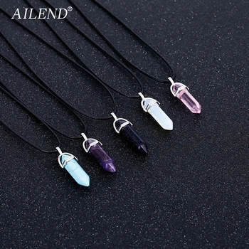 AILEND Новинка 2018 года Горячие шестиугольный кристалл тигровый глаз бирюзы pendentif amethyste камень Подвесные цепи ожерелье для женщин ювелирные изд...