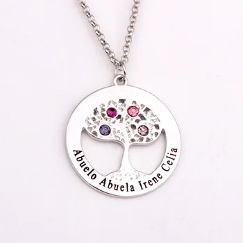 Круг дерево кулон Цепочки и ожерелья с Birthstones 2018 Новое поступление длинные камень Цепочки и ожерелья s индивидуальный заказ любое имя YP2495