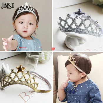 JINSE цвета: золотистый, серебристый Star Женские аксессуары для волос для новорожденных дети ребенок принцесса Банданы для мужчин волос Обувь ...