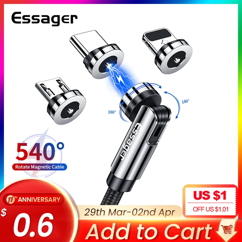 Essager 540 вращаться Магнитный кабель быстрой зарядки магнит зарядное устройство кабель с разъемом Micro USB Type-C кабель мобильный телефон кабель д...