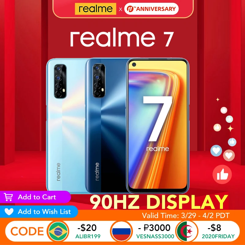 Realme 7 8 ГБ ОЗУ 128 Гб ПЗУ глобальная Версия 30 Вт Дротика зарядка 48MP Quad Camera 90 Гц дисплей Helio G95 игровой процессор 5000 мАч батарея новая