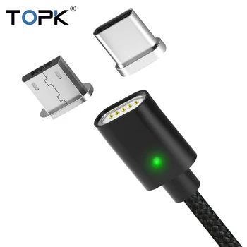 Topk [1 м] светодиодный магнитный кабель USB, магнит Тип USB C & Micro usb-кабель и USB кабель для iPhone X 8 7 6 Plus и Инструменты для наращивания волос