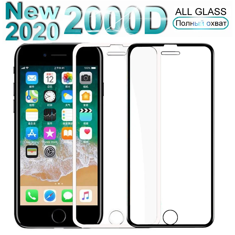 2000D Full Cover Tempered Glass For iPhone SE 2020 6 6S 7 8 Plus Screen Protective Glass For iPhone X XS 11 Pro Max XR Film Case