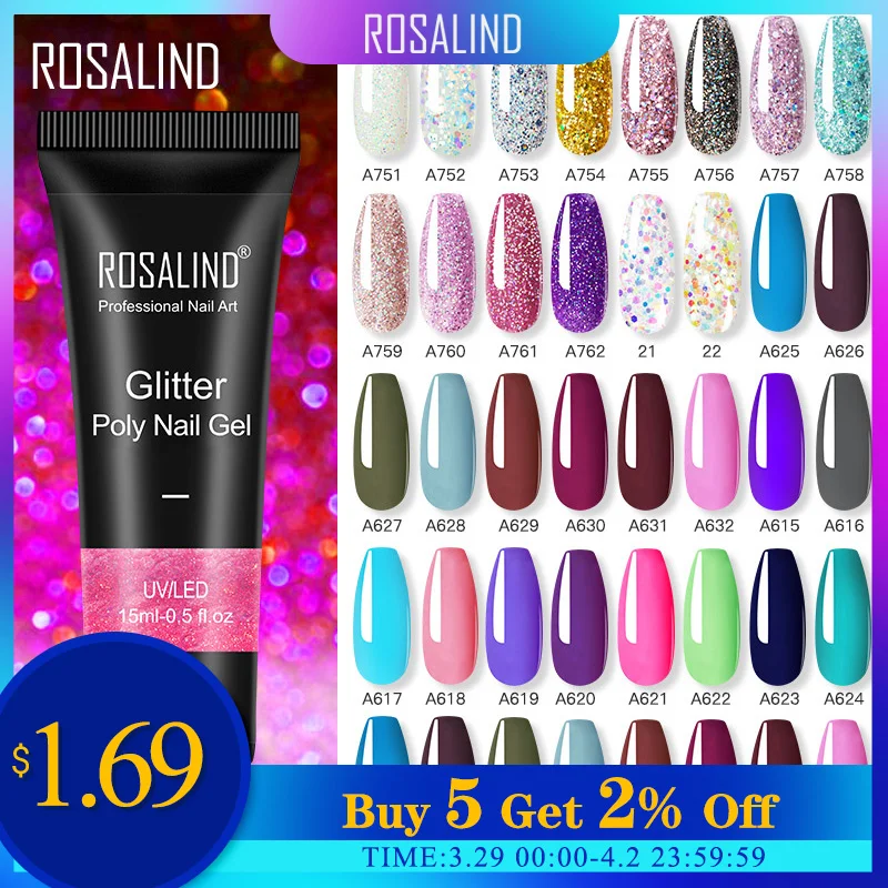 ROSALIND полигель-лак для ногтей строитель гель для наращивания маникюр Дизайн ногтей светящийся Полупостоянный удлиняющий Гель-лак
