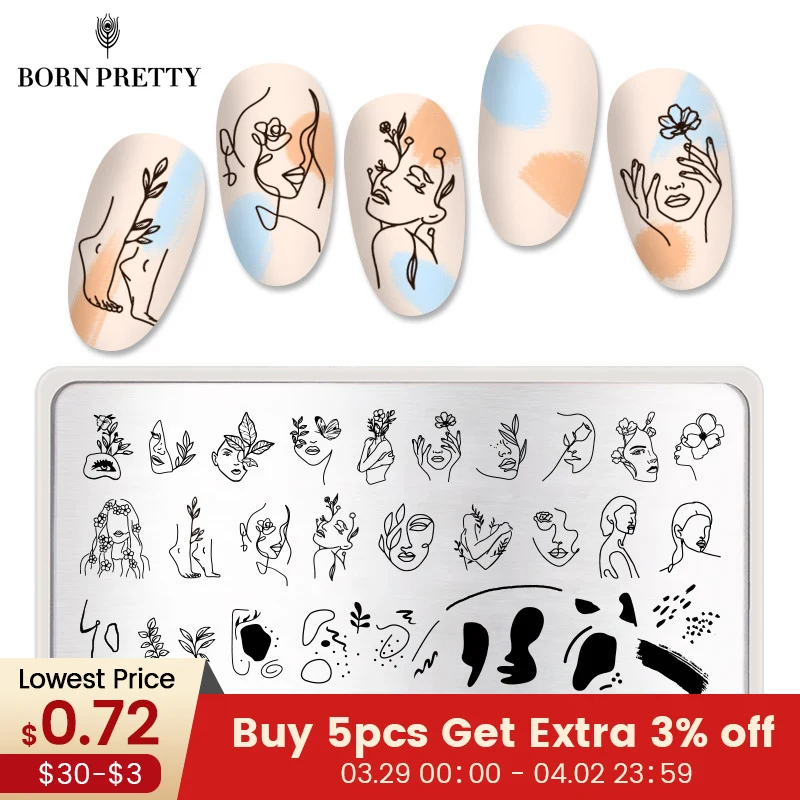 BORN PRETTY штампованные пластины для ногтей портретный цветок для дизайна ногтей шаблон стальной трафарет с геометрическим принтом модный Power-L005