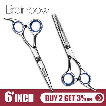 Брэйнбоу 6 дюйма Резка истончение стайлер для укладки волос ножницы Нержавеющая сталь Парикмахерские ножницы регулярные плоские зубы лезв...