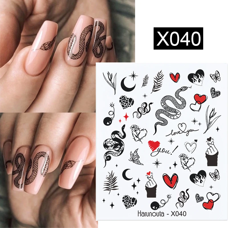 1 шт. змея дизайн с изображением животных; Водные Наклейки Harunouta черного цвета со змеиным узором любовь в форме переводные наклейки для Фольг...