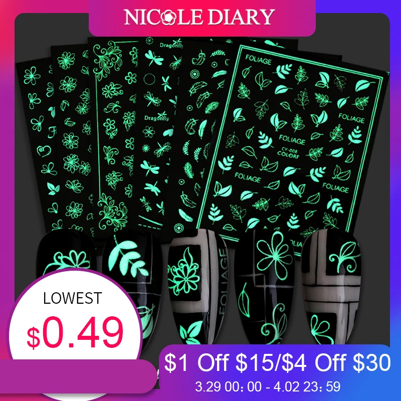 Светящийся эффект 3D лист цветок дизайн Хэллоуин блестящий дизайн ногтей Блестящий дизайн ногтей стикер украшения Типсы для маникюра инстр...