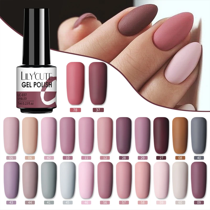 LILYCUTE 7 мл УФ-гель для ногтей осенне-зимний цвет полуперманентный Матовый верхний слой необходимый отмачиваемый УФ светодиодный Гель-лак для ногтей
