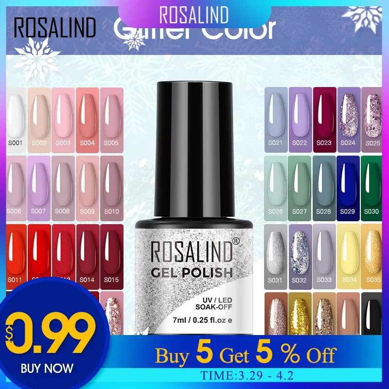 Гель-лак ROSALIND 7 мл, Блестящий лак для ногтей, все для маникюра, базовое и верхнее покрытие для ногтей, полуперманентные УФ-лаки