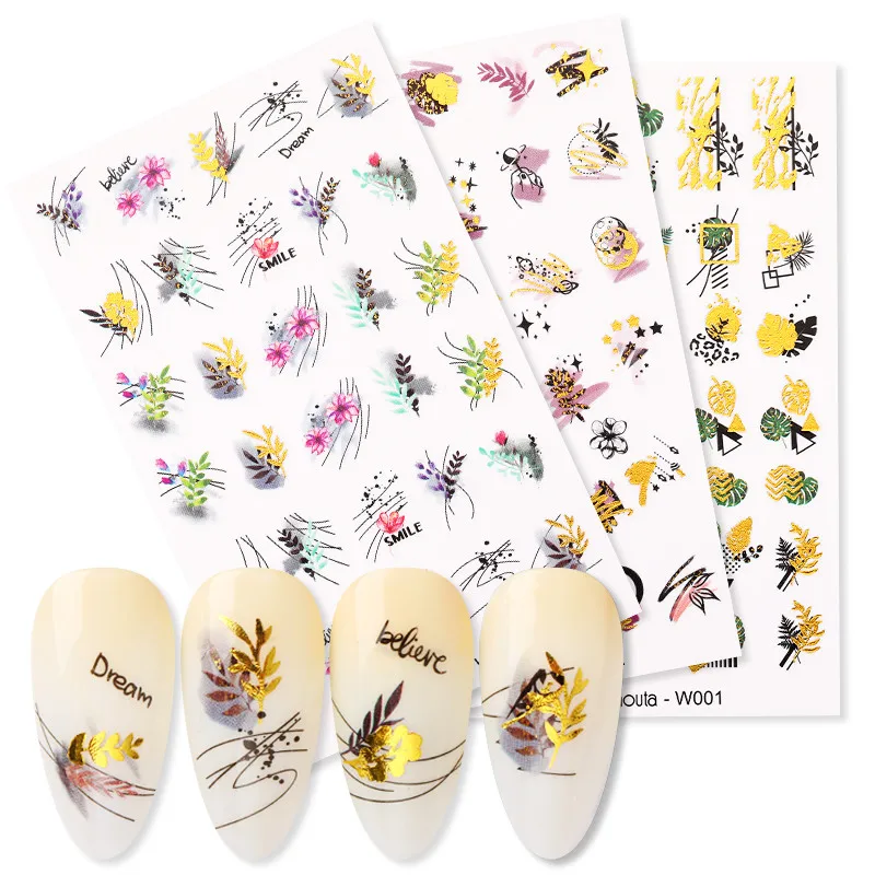 1 лист золотистых водных наклеек для ногтей Harunouta, Летние Водные переводки с цветами, накидки из фольги для ногтей для украшения ногтей своим...