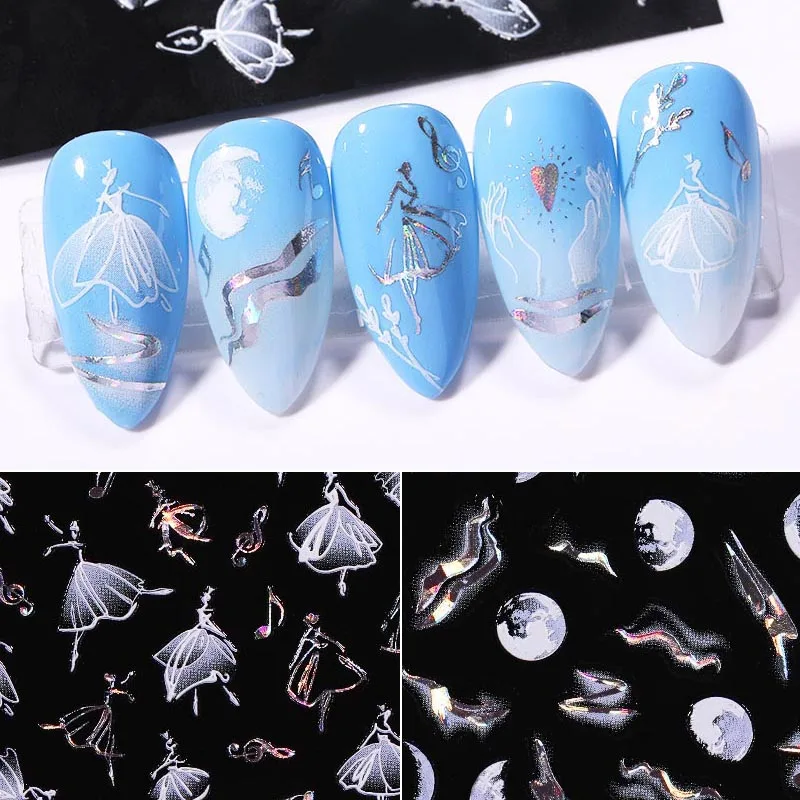 Лазерные блестящие украшения для ногтей, голографическая 3D переводная наклейка, наклейки для летней серии, слайдер, обертывание, кончики для украшения ногтей
