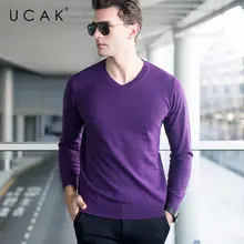 UCAK брендовый свитер Мужской Классический Повседневный v-образный вырез Pull Homme чистая мериносовая шерсть пуловер Мужской Осень Зима мягкий к...